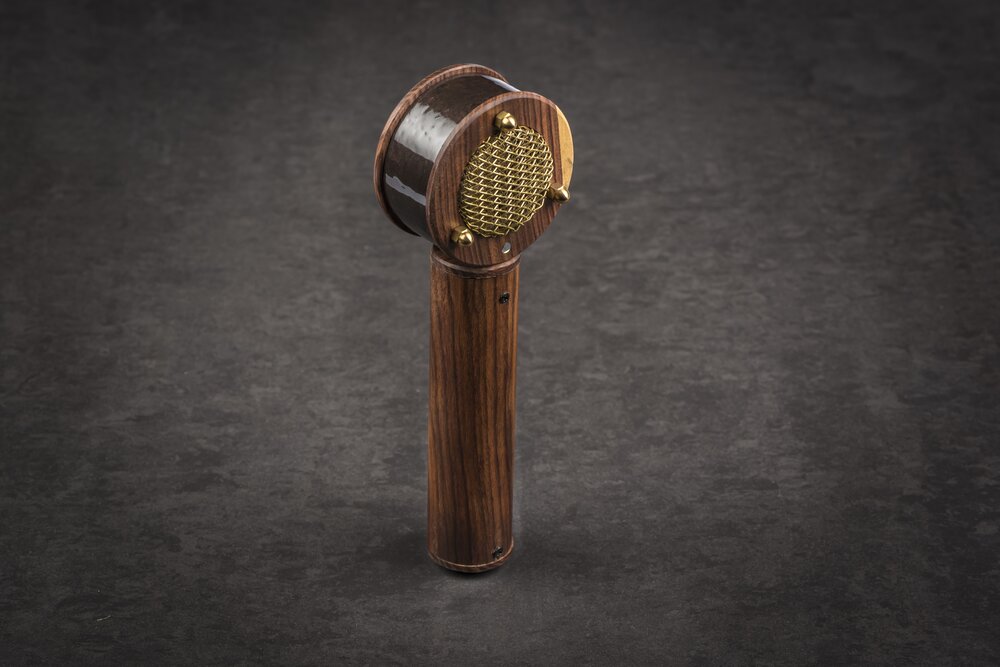 Een open maar warme toon pakt alle nuances van uw stem of instrument. En niet alleen qua klank maar ook qua gevoel in je hand weet je dat dit kwaliteits microfoons zijn. Geen nephout of plastic, maar echt hout en metaal. Een abalone, messing of spectrolite inlay geeft aan wat de voorzijde is van deze cardioide grootmembraan condensator microfoon met  FET transformerloos electronica ontwerp.